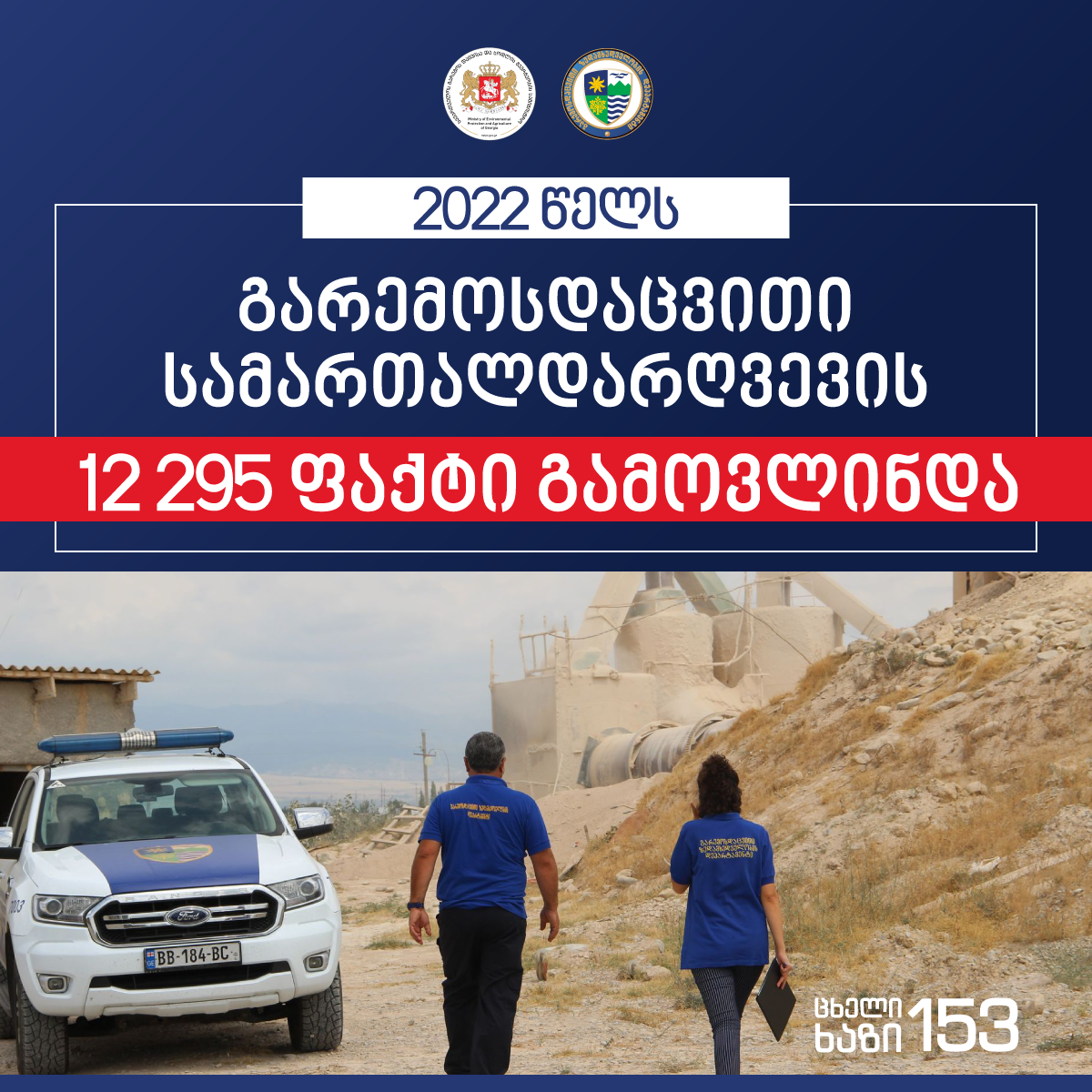გარემოს დაცვისა და სოფლის მეურნეობის სამინისტროს გარემოსდაცვითი ზედამხედველობის დეპარტამენტის თანამშრომლებმა, ქვეყნის მასშტაბით გატარებული პრევენციული ღონისძიებების შედეგად, 2022 წლის 1 იანვრიდან 31 დეკემბრის ჩათვლით, 12 295 გარემოსდაცვითი სამართალდარღვევა გამოავლინეს. მათგან 509 ფაქტი სისხლის სამართლის დანაშაულის ნიშნებს შეიცავს. მასალები, შემდგომი რეაგირების მიზნით, საგამოძიებო ორგანოებს გადაეგზავნა.