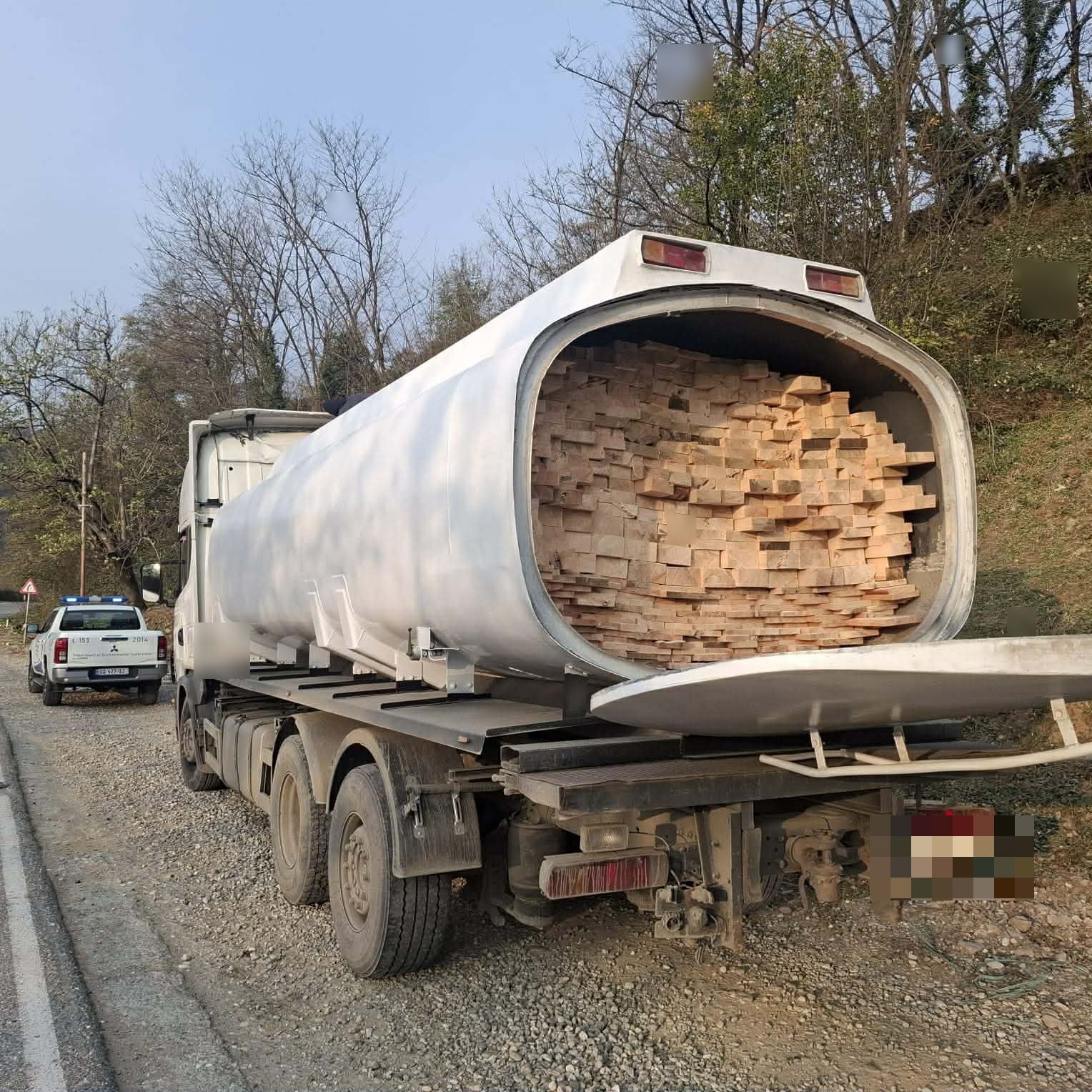 გარემოსდაცვითი ზედამხედველობის დეპარტამენტმა ბენზინმზიდში მოწყობილ სამალავში დიდი ოდენობით ფიცარი გამოავლინა